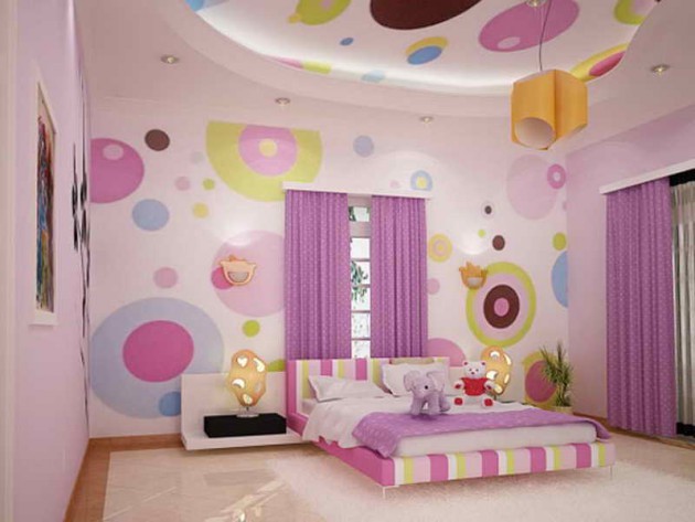 Отличный вариант наклеить обои с забавными мотивами, которые могут отлично вписаться в интерьер. Выберите ткани с интересными декорациями и мотивов, которые принесут тепло в комнату. Красочные шаблоны с любимыми героями девушек могут присутствовать в стульях, подушках, коврах, шторах и т.д. Полки чрезвычайно важным элемент для каждой девушки. Там она выставит свои личные вещи и свои любимые поделки, фотографии и игрушки. Мы представляем вам коллекцию красивых интерьеров для вашей маленькой принцессы.